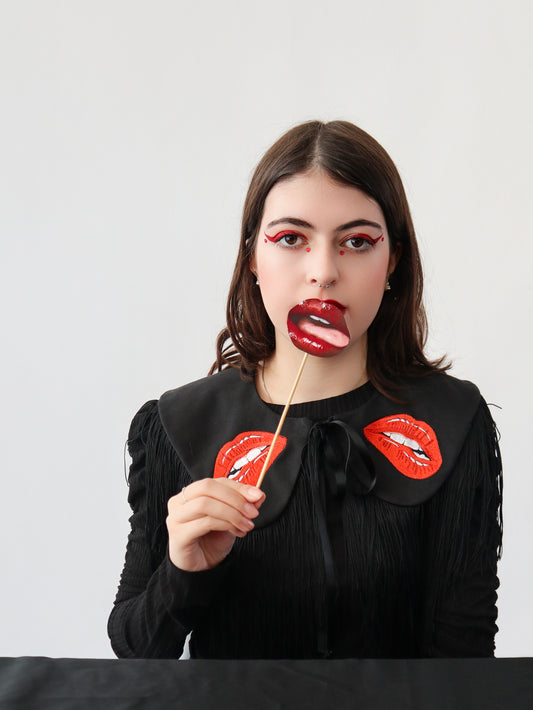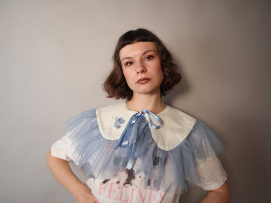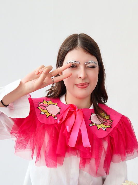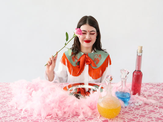 Whispered secrets from a neon graveyard—phantom cowboys ride beneath electric blue, while candy-pink feathers ripple with every step. This collar is a headline act for midnight mischief and Halloween enchantment.