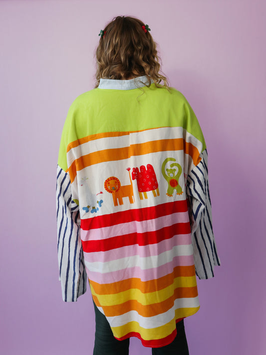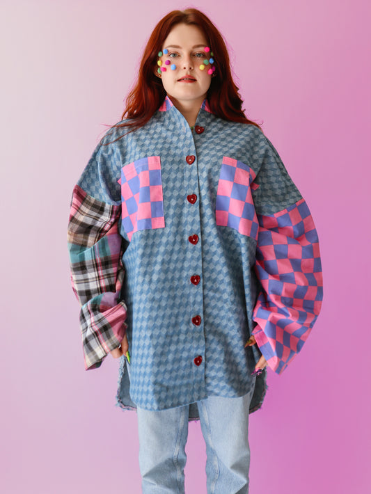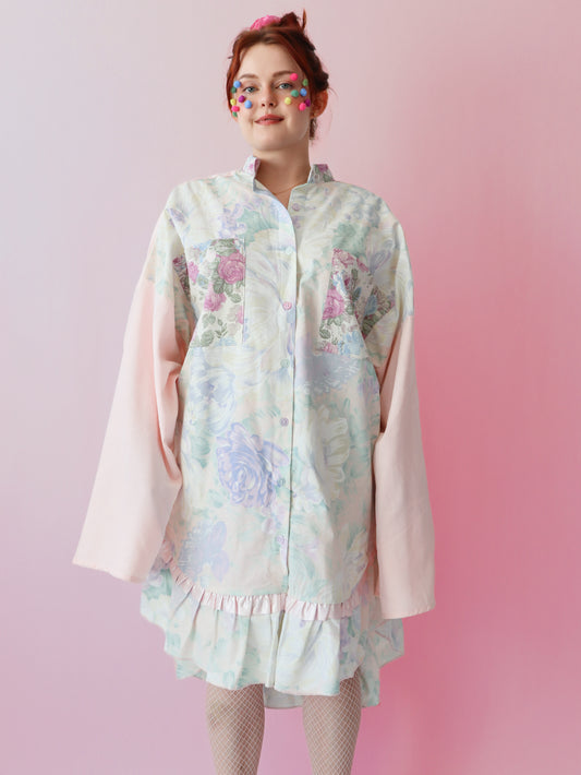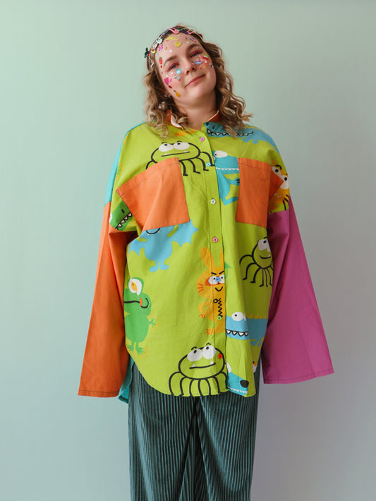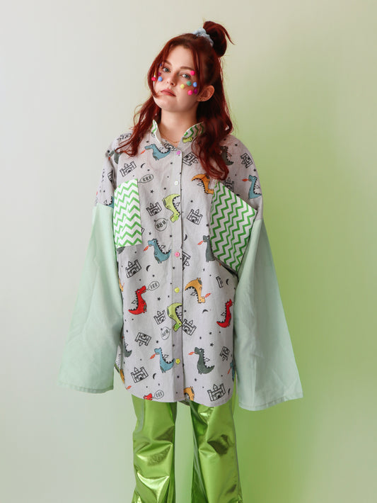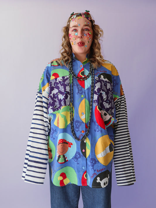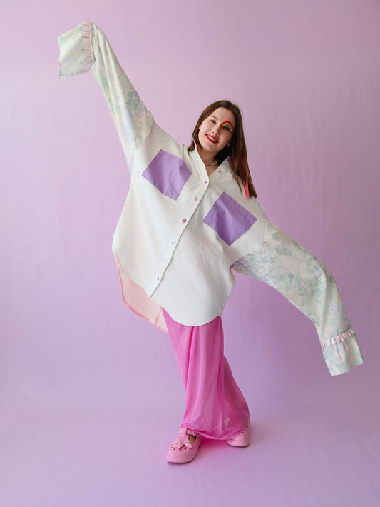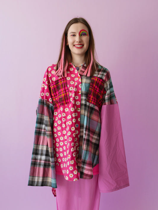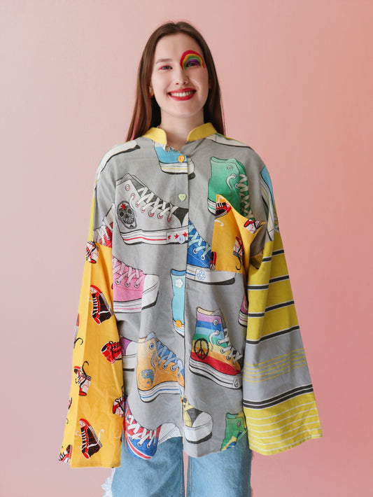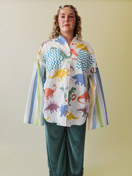 100% upcycled fabric – once a bedsheet, tablecloth, curtains, or scraps. Now a damn good shirt.