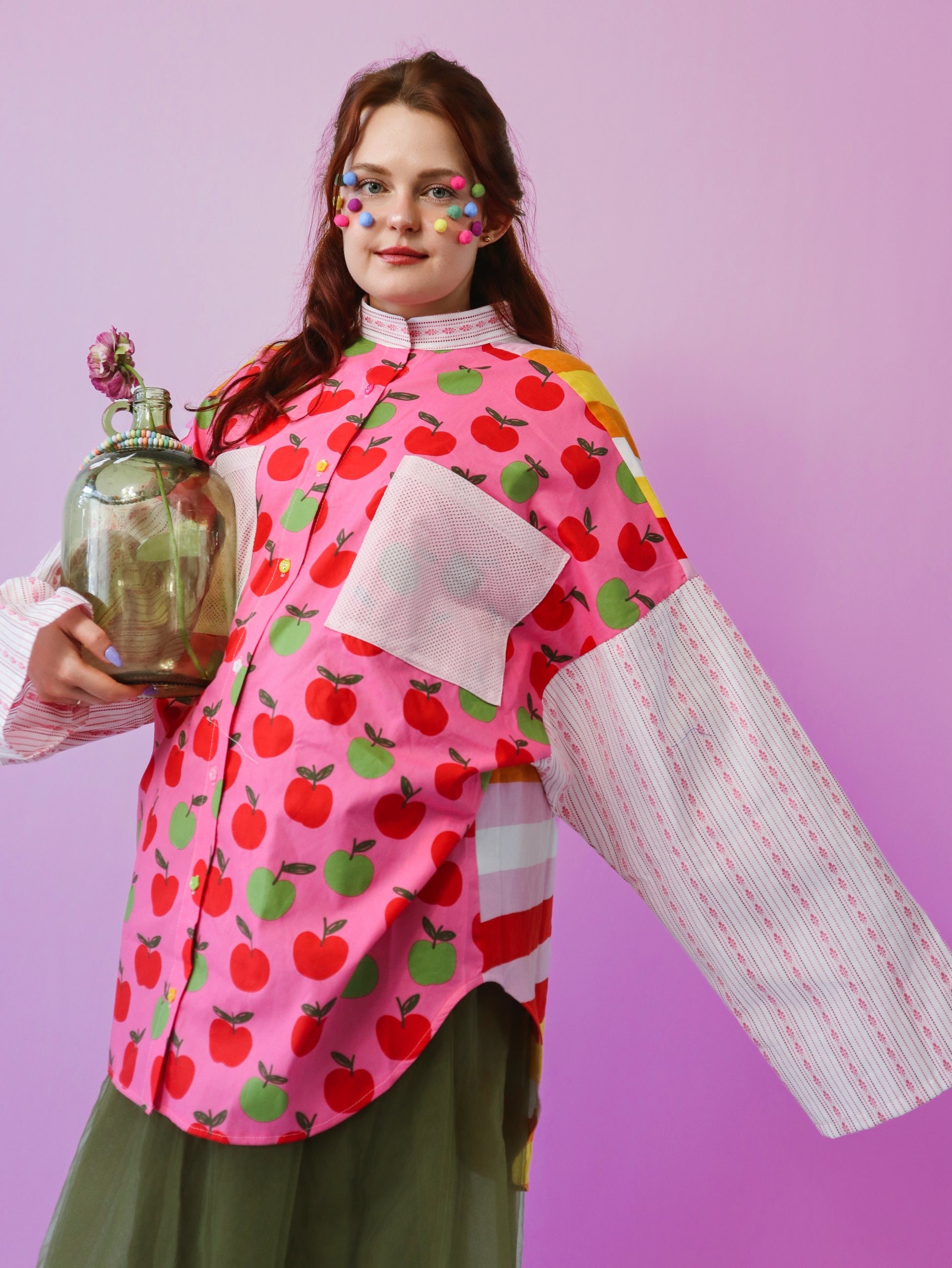 100% upcycled fabric – once a bedsheet, tablecloth, curtains, or scraps. Now a damn good shirt