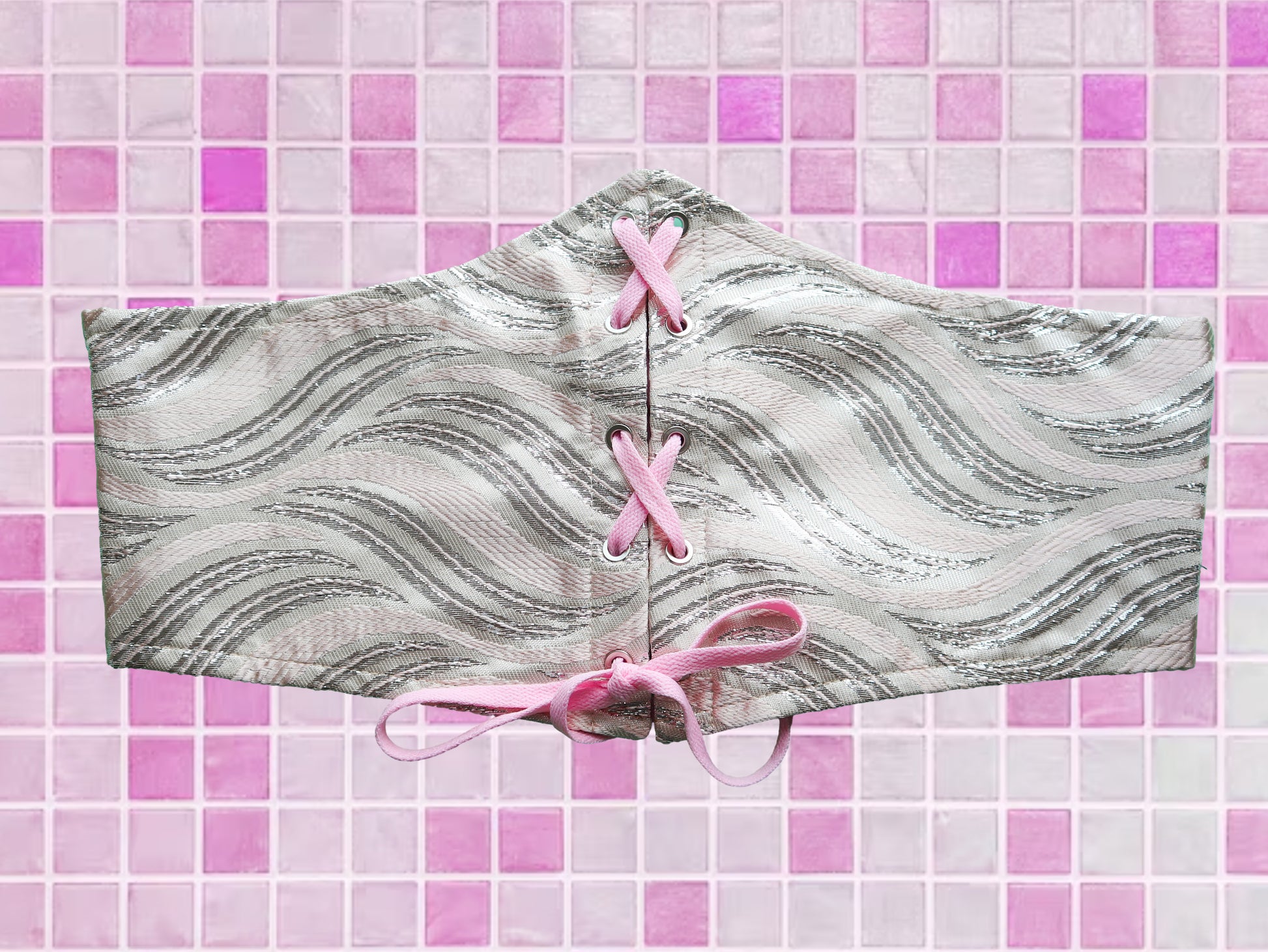 100% upcycled fabric – once a bedsheet, tablecloth, curtains, or scraps. Now a damn good corset.